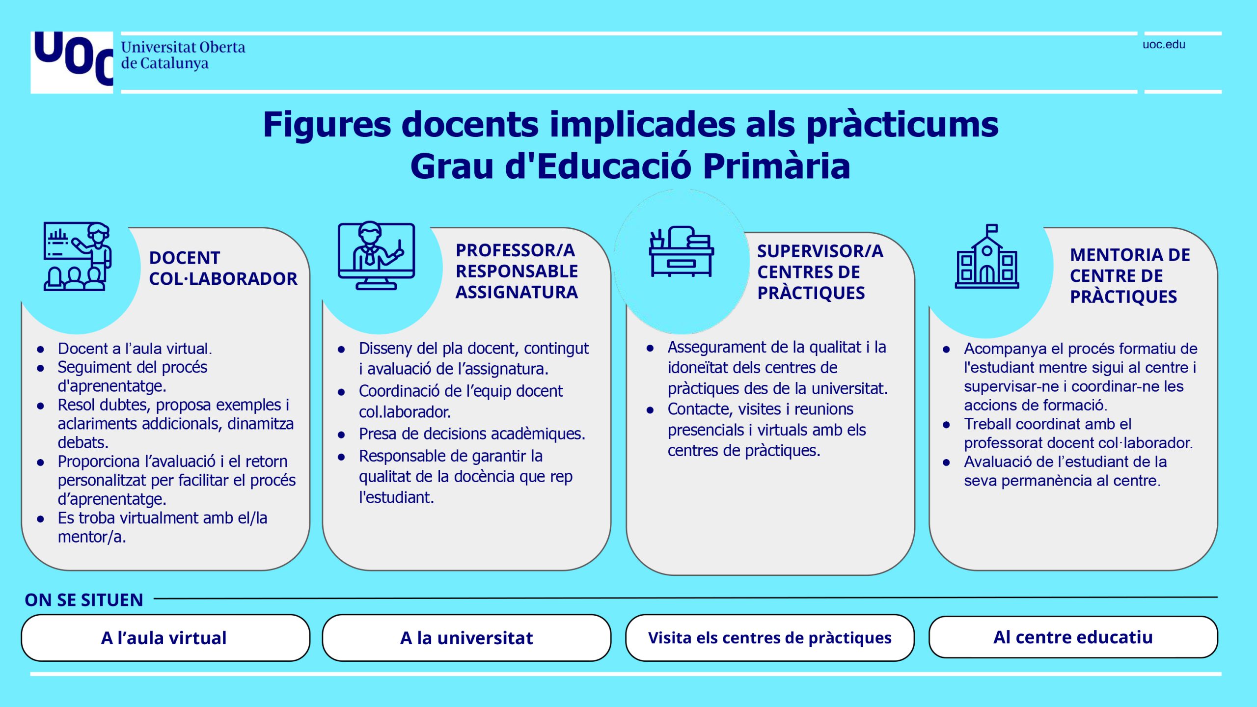 Es presenta una breu explicació de les figures docents implicades en els Pràcticums: